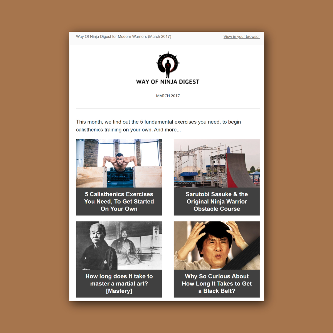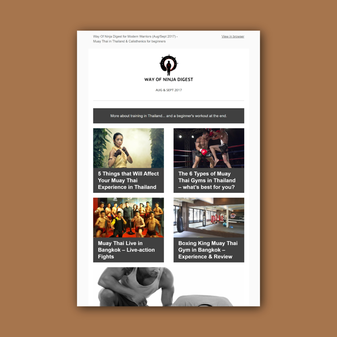 From 2016 to 2018, I ran a recurring email digest for my niche fitness site, Way of Ninja.